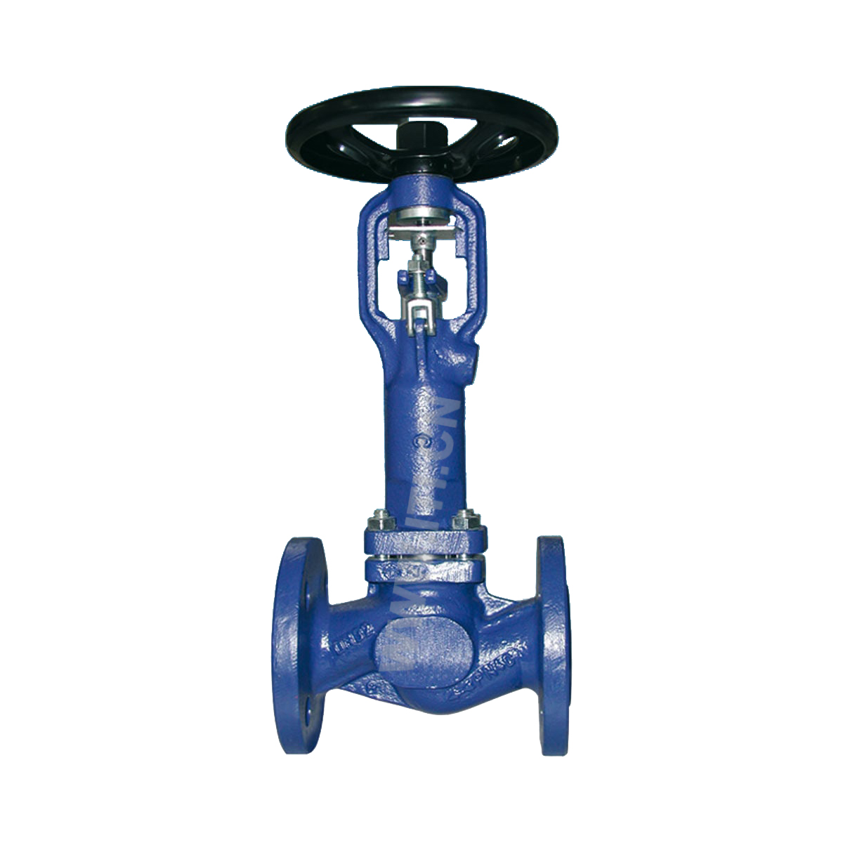 波纹管不直接与介质接触并采用防扭曲装置,具有更良好的流通性,填料压盖由螺栓固定确保双重安全性。